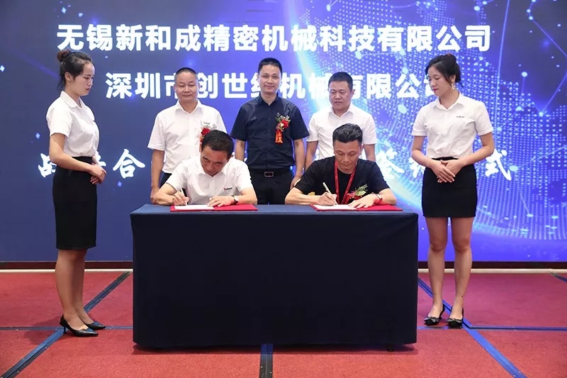 發布會最后,無錫新和成精密機械科技有限公司董事長陳剛、廣東九九華立新材料股份有限公司總經理華崢嶸均在現場與臺群精機簽訂戰略合作及意向購機協議,活動期間簽約設備數量超過400臺,總金額超過億元。雙方均表示此次能與臺群精機并肩作戰、通力合作,共同創新發展,會對未來的5G產品加工帶來重大突破。