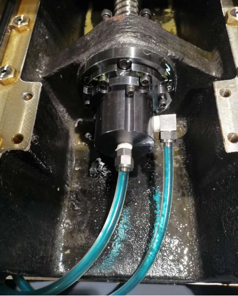 · 三軸絲杠采用中空冷卻技術,通過冷卻介質帶走熱量,控制溫升,達到穩定絲杠精度的效果,減少80%-90%熱位移,實現高速/高定位加工。
