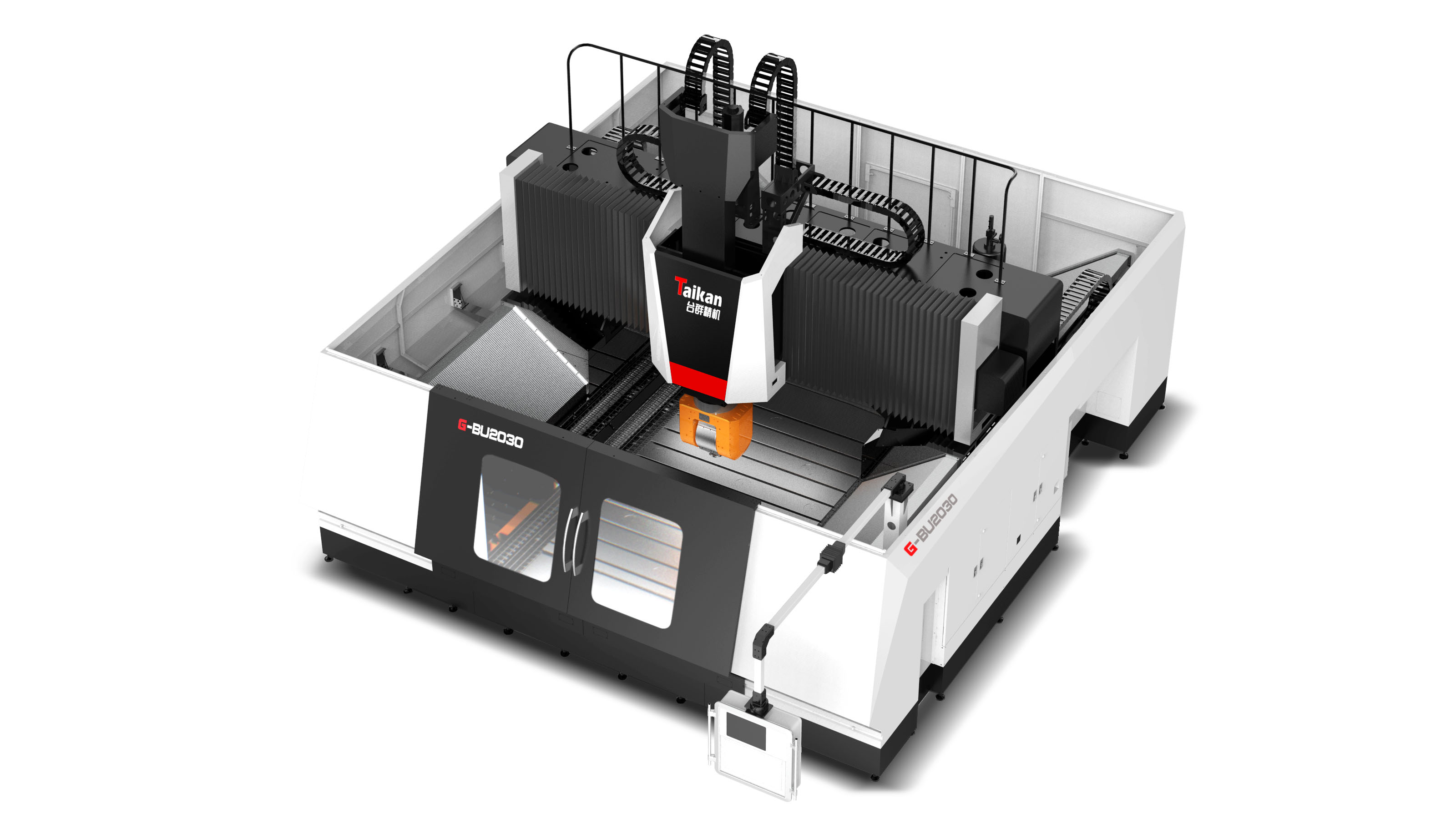 我公司新研發的G-BU橋式五軸龍門加工中心機床,可廣泛應用于汽車、能源、模具、船舶等行業的零件加工,以加工黑色和有色金屬中小型復雜零件為對象,進行五面體及五軸聯動加工,融入高動態性能加工理念,使其具有加工復雜空間曲面所需的高速度、高精度等特點。該機型工作臺沿X軸方向大于4米。Y軸行程大于3.2米。